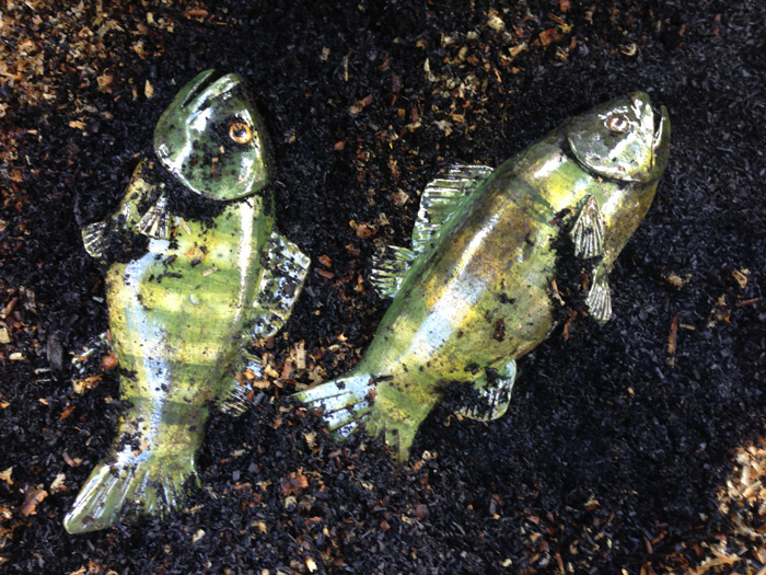 Corbin finds Raku images in the woods, along roadsides, and in her mind—a chickadee, a crow, a fish or a dream. She thinks Raku. She loves how the wild creatures interact with the human made landscape. A bird on a fence or sign post always draws her attention and the image is instantly transposed into Raku.