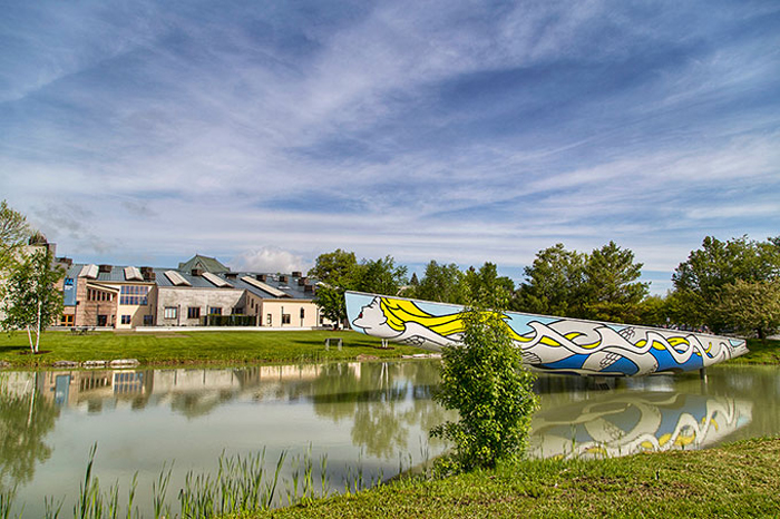While not a sculpture park, per se, the campus of Middlebury College claims to be “home to one of the most important public art collections of any American liberal arts college” and the school’s roster of twenty-four nationally and internationally acclaimed artists, whose large works are sprinkled throughout the campus, bolsters such an assertion. Perhaps the most recognizable piece in the collection is Robert Indiana’s iconic LOVE placed on the artificial pond behind the Mahaney Center for the Arts. One of the largest works Tony Smith ever created, Smog, can be found on the east lawn of McCardell Bicentennial Hall. And on the quad in front of Munroe Hall you can find the graceful Frisbee Dog by Vermont’s own Patrick Villiers Farrow, whose studio and gallery was down Route 30 in Castleton until his untimely 2009 passing.