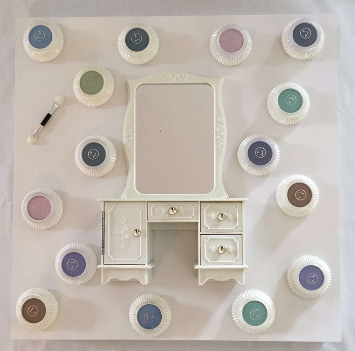 Located in the former Lake Sunapee Bank building, this exhibition space is curated by Castleton University. “The SHE Project” – part 1 is a collaborative exhibit created by Vermont multidisciplinary artists Kristen M. Watson and Mary Admasian. The two have a common interest in creating interactive works that explore what women of all ages experience as they navigate the pressure to maintain a youthful appearance at any cost, and what they contend with as they age in the highly visual social media era, where celebrity culture reigns, and where we much more frequently see ourselves and are seen by others. Consequently a phenomenon of personal social branding and hyper-scrutiny has emerged. With a nod to the tradition of femmage, art constructed of found and saved objects that express a female narrative, the artists use mirrors, cosmetics, beautification products, and natural elements to address themes around self-confidence, worth, and age-related sexual power. They explore their own experiences as targets of aggressively marketed “beautification” products that promise youth, glamour, and success. Watson & Admasian create compelling works that comment on the influence of history, social norms, perception, social media, and vanity on the current state of womanhood. The exhibition is on view through 06/24/2017. (image: Eye View by Mary Admasian (14″x14″))